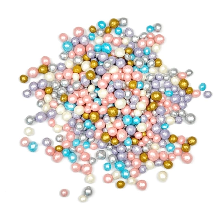 Pastelowy Mix to kompozycja perełek w kolorach złotym, białym, różowym, niebieskim, srebrnym oraz fioletowym, która idealnie pasuje do wszelkiego rodzaju wypieków – od urodzinowych muffinek po wykwintne torty. Dzięki delikatnym pastelowym odcieniom, posypka nadaje wypiekom subtelnego blasku i wyjątkowego stylu.