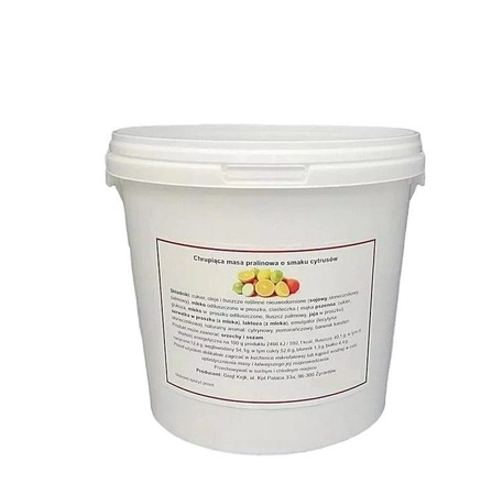 Pralina do tortu CYTRUSOWA z herbatnikami Grejt Kejk to gotowa do użycia, chrupiąca masa, która doskonale sprawdzi się jako nadzienie do tortów, ciast, czekoladek, babeczek oraz deserków. Dzięki zawartości ciasteczek, które nie namiękają w masie, Twoje wypieki pozostaną chrupiące nawet na drugi dzień po przełożeniu. Wyrazisty, cytrusowy smak w połączeniu z delikatną słodyczą i chrupkością croquantu sprawia, że każda warstwa tortu nabiera wyjątkowego charakteru.