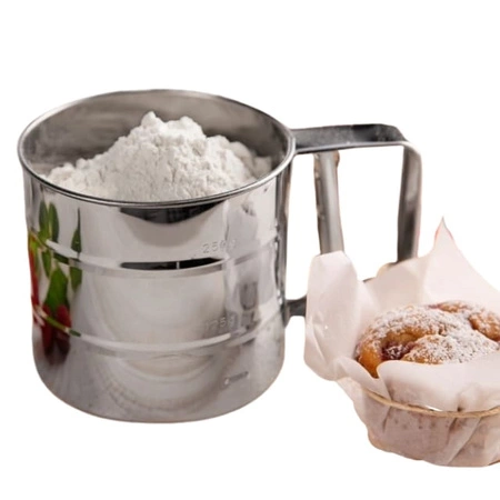 - Przeznaczenie: Do przesiewania mąki, cukru pudru, kakao i innych drobnych składników.