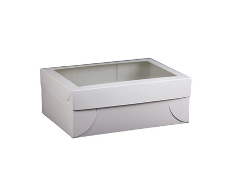 Okienko ze sztywnej folii, pudełko wysyłane na płasko do samodzielnego składania.