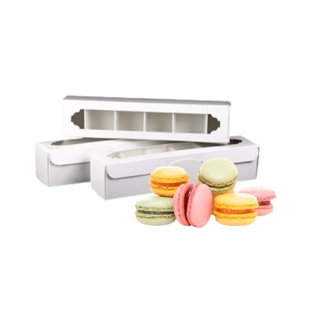Pudełko na makaroniki i beziki – 6 sztuk z pokrywką i okienkiem | Opakowanie na makaroniki, pudełko na słodkości, akcesoria cukiernicze