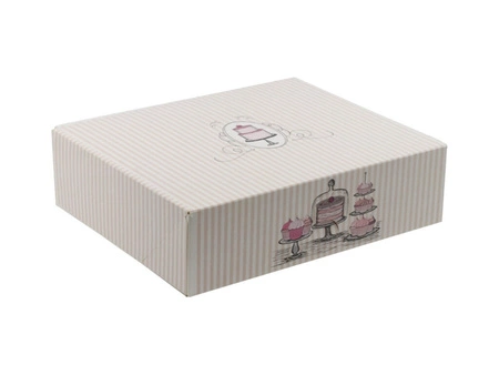 Eleganckie pudełko z ponadczasowym wzorem, dodadzą słodkim wypiekom luksusowego charakteru.