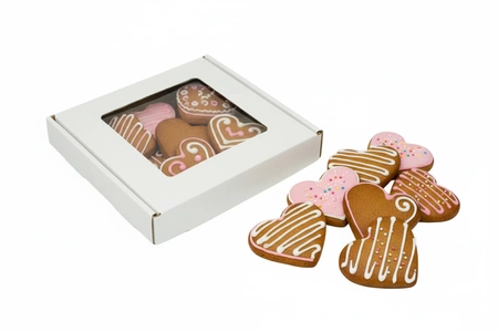 DesignPack prezentuje ekskluzywne białe pudełko z okienkiem, stworzone z myślą o estetycznym eksponowaniu pierników, ciasteczek oraz innych drobnych wypieków. Doskonały wybór dla profesjonalnych cukierników, jak i domowych mistrzów pieczenia, którzy pragną zaprezentować swoje kulinarne dzieła w elegancki sposób.