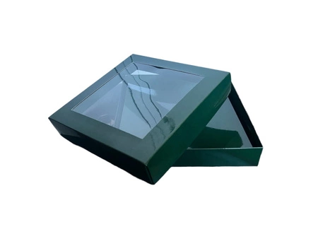 Pudełko z okienkiem 19x19x3,5 cm BUTELKOWA ZIELEŃ – eleganckie opakowanie na Twoje wypieki