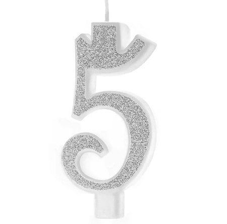 Świeczka urodzinowa cyfra 5 SREBRNA BROKATOWA Party Pal