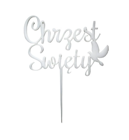 Topper na tort "Chrzest Święty" BIAŁY z gołębicą