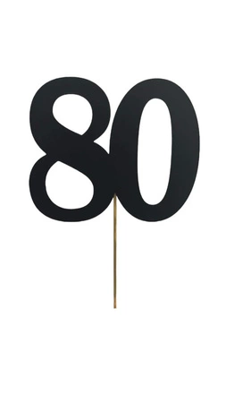 Topper na tort liczba 80 CZARNY, 22 cm