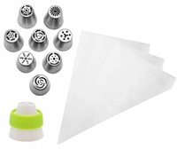 Zestaw 9 tylek z rękawem cukierniczym i adapterem