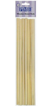- Odkryj zestaw 12 wsporników drewnianych do tortów piętrowych od PME, niezbędnych w tworzeniu stabilnych i efektownych konstrukcji cukierniczych. O długości 30,4 cm i średnicy 0,6 cm, te naturalne wsporniki wbija się w dolne piętro tortu, przycina na wymag