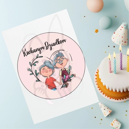 - Personalizuj torty i desery za pomocą wydruku jadalnego "Kochanym Dziadkom". Idealny na Dzień Dziadków, wykonany na bezpiecznym papierze jadalnym (opłatkowym, cukrowym, skrobiowym) o średnicy 20 cm. Łatwy w użyciu i w pełni jadalny, dodaje osobistego char