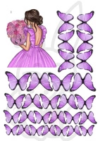 Wydruk jadalny opłatek na tort DZIEWCZYNA Z FIOLETOWYMI MOTYLAMI MOTYLE