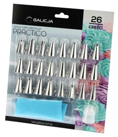 Zestaw 26 części: tylki, worek cukierniczy oraz adapter do dekoracji ciast i tortów – Galicja