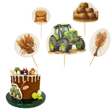 Zestaw figurek cukrowych na tort TRAKTOR W POLU KŁOSY